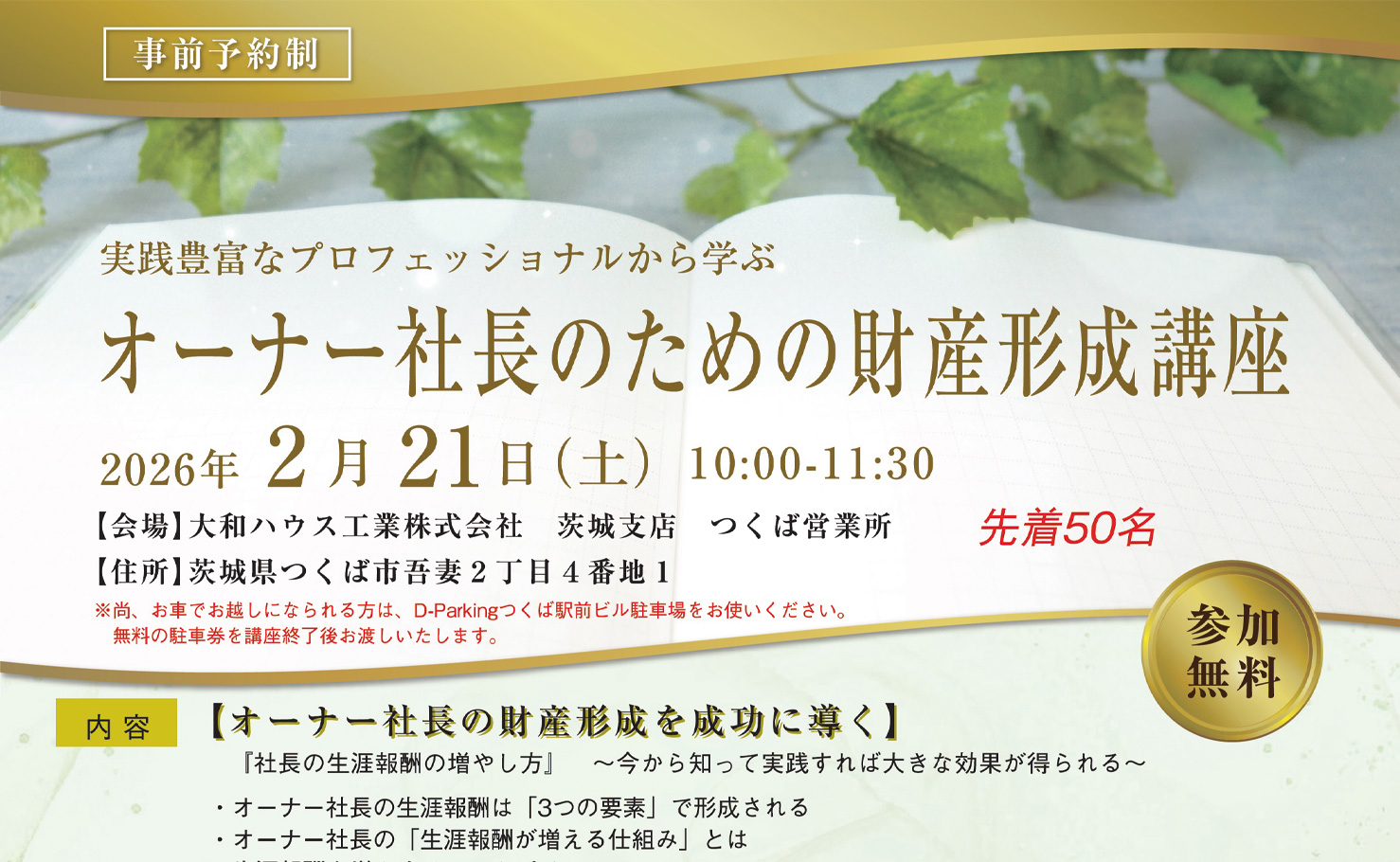 「つくばハウジングパーク」の第2会場となる、12区画からなる「つくばハウジングパークANNEX」。「健康・省エネ・安心住宅」の提案をテーマに、既存会場の34区画と併せ、46区画の大規模展示場として、これまで以上に地域の皆様の家づくりをサポートいたします。