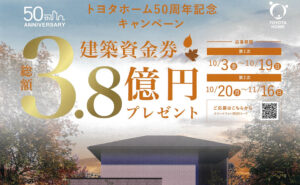 トヨタホーム50周年記念キャンペーン 建築資金券〈総額〉3.8億円プレゼント