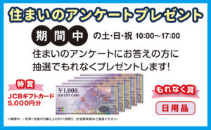 2棟ご見学で1つ・3棟ご見学で2つもれなくプレゼント