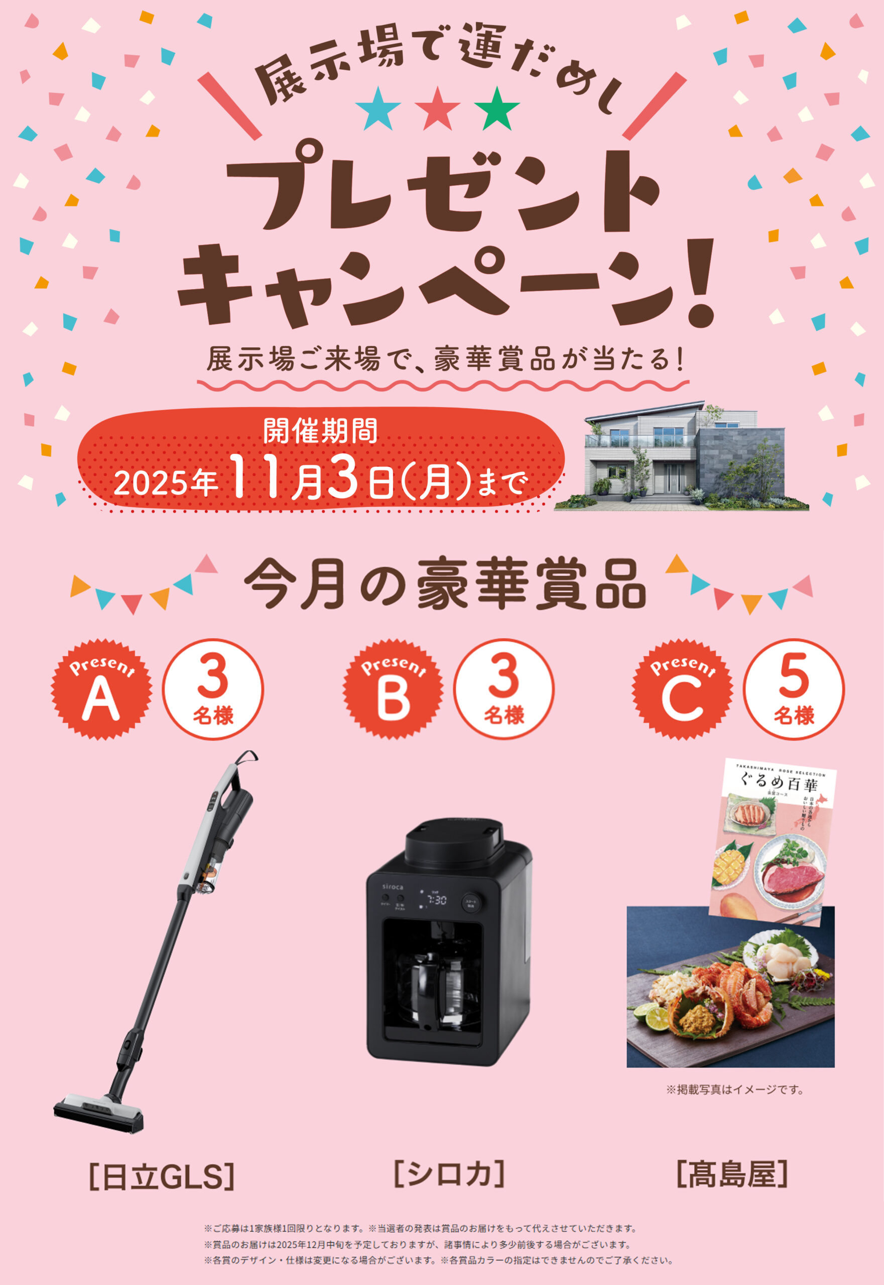 展示場ご来場で豪華賞品が当たる!
